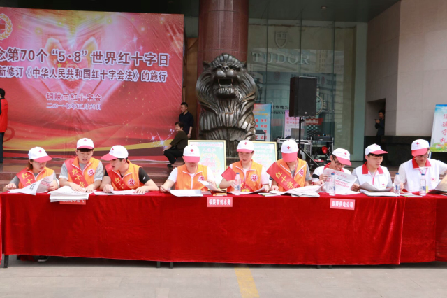5月6日上午,为了纪念第70个“世界红十字日”,迎接新修订《中华人民共和国红十字会法》的施行,凝聚更多的社会力量参与和支持红十字事业,进一步扩大红十字会的社会影响,市红十字会联合县、区红十字会、铜陵供电公司、港华燃气、首创水务、爱尔医院等多家服务企业在合百广场组织开展纪念世界红十字日志愿服务主题宣传活动。