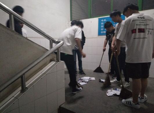 日的晚自习,机械工程系生活部发动部员开展“清扫楼道,别让垃圾绊住脚”的楼道义务清扫活动,机械系生活部部员们在生活部长的带领下开始清扫楼道。