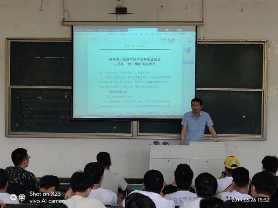 讲座主要就校内综合实训安排、顶岗实习安排和实习内容、实习期间安全注意事项、毕业生在铜就业创业优惠政策等内容展开,通过本次宣讲让同学们对2019年秋季学期顶岗实习有了全面认识,真正把所学知识运用到实践中,并且在实习过程中要严格遵守企业及学校的规章制度,最终圆满完成实习任务并顺利就业。