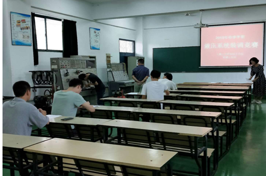 比赛现场选手们运用所学知识首先进行液压回路的设计绘制,然后在液压实验台上进行液压系统的安装和并按任务书上要求调试。通过本次大赛增强我系学生运用并强化了液压传动的相关知识,同时锻炼了液压元件、基本回路的实际操作能力以及液压原理的运用,提高学生实践动手能力,培养学生的创新意识和创新能力。