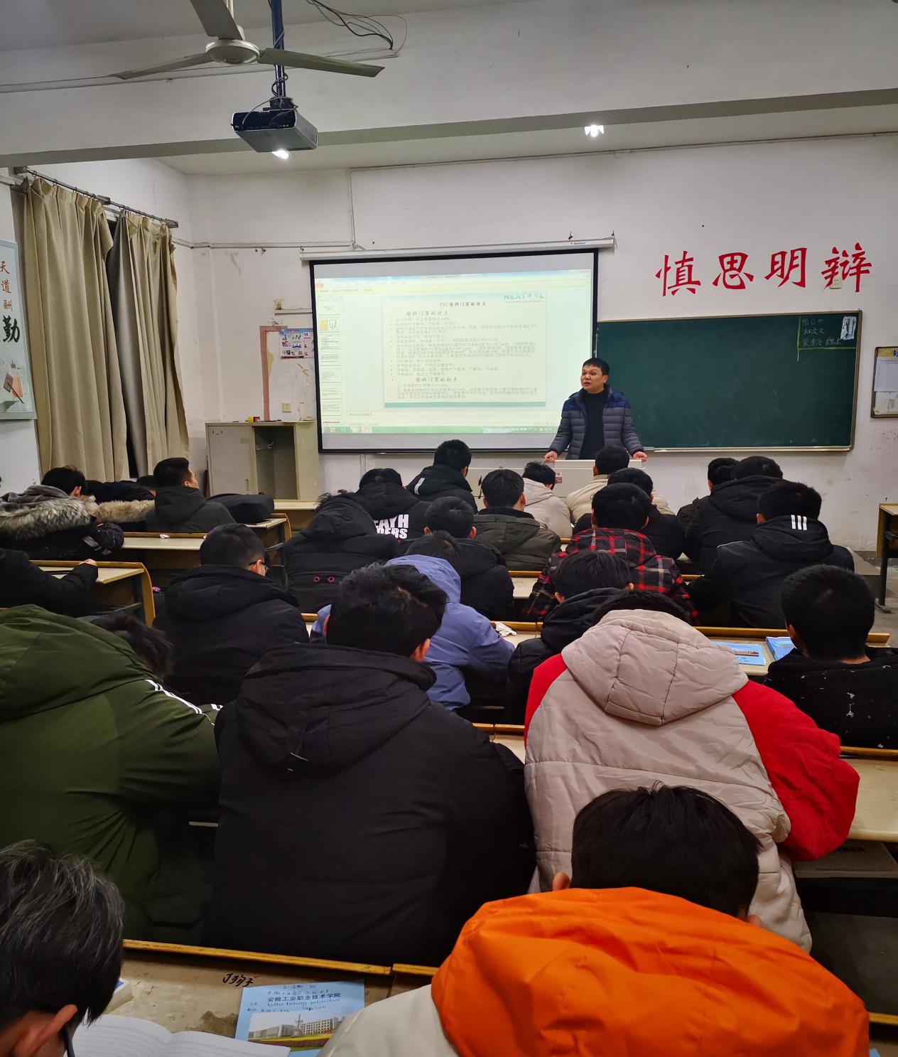 2019年12月26日,机械工程系邀请安徽省耐科装备科技股份有限公司黄谢刚主管进校园为学生开展讲座,本次讲座主要面向18数控技术、机械制造及自动化、机电设备维修与管理和模具设计与制造等专业学生做专业讲座,同时与同学们进行交流互动,让学生进一步了解企业。