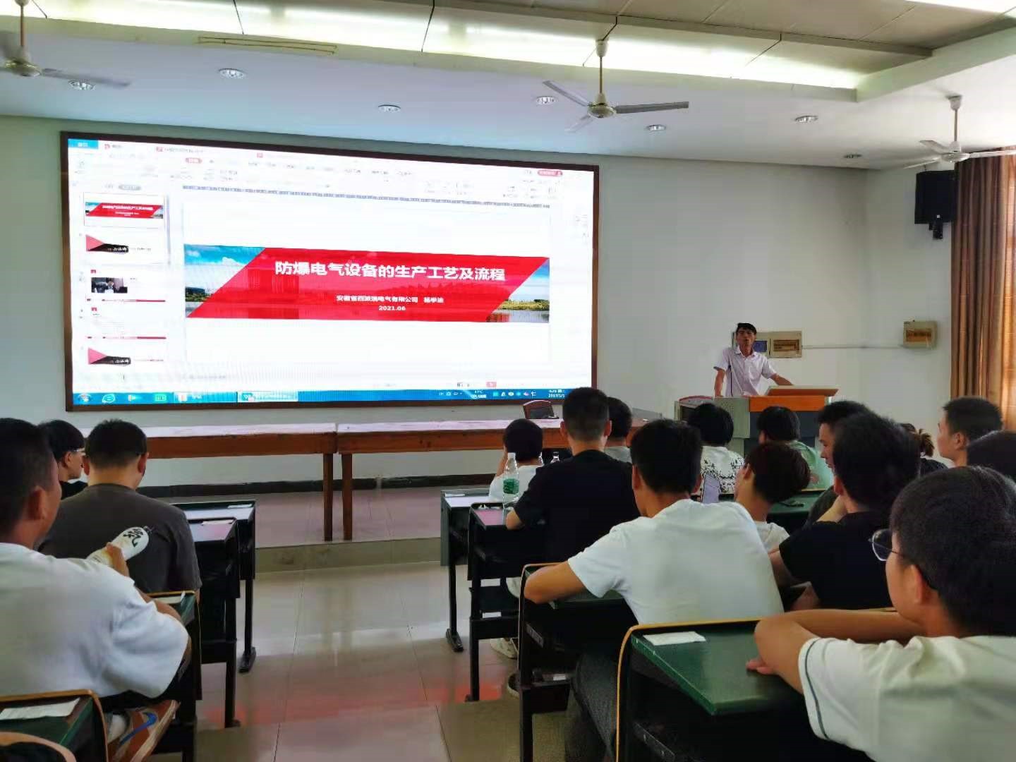 6月22日上午10点,机电学院邀请安徽省西派瑞电气有限公司创始人、电气/机械工程师杨学法,在教学楼阶梯101教室为机电、电气专业的同学们进行了一场主题为“防爆电气设备的生产工艺及流程”的专业知识讲座。