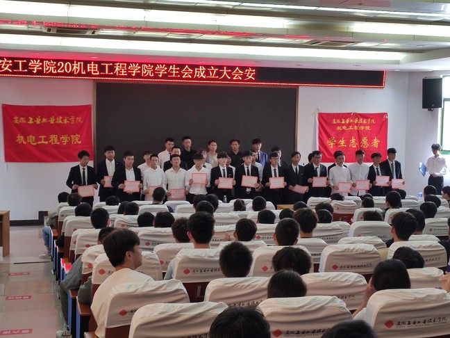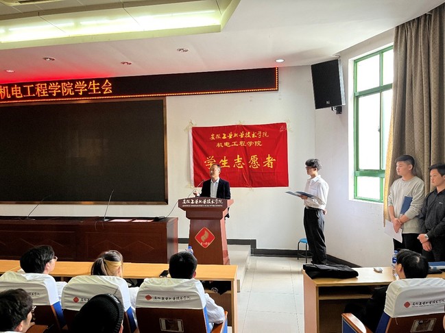 为全面贯彻学生会的改革与发展,在保障学生会工作的连续性的基础上,培养一批高素质、高水平的学生会干部,充分发挥学生会的自主能力,大力促进校园文明建设。2021年10月31日下午2点,机电工程学院在教学楼2楼201阶梯教室召开“机电学院学生会暨志愿者协会成立大会” ,邵书记和相关老师出席了本次会议。