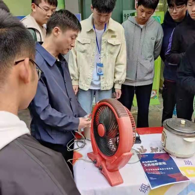 2021年11月19日下午3:30,机电工程学院家电维修社团部分社团成员在指导教师的指导和社长的带领下,在校内进行了家电义务维修活动。
