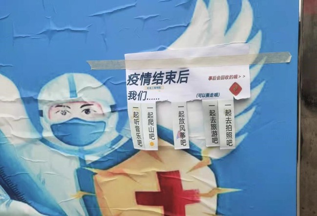 一张小小的便签,包含着“疫情结束后,我们...”,“一起去逛街吧、一起去约会吧、一起去旅游吧、一起去吃火锅吧”等等相信大家一定还有与朋友大大小小的的约定。在张贴不到两天的时间,有很多地方的便签上的约定被尽数撕下!