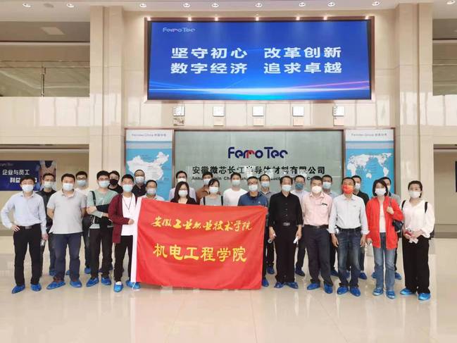 考察团此行先后走进安徽微芯长江半导体材料有限公司、铜陵碁明半导体技术有限公司、安徽美芯新材料有限公司实地参观。在企业负责人的带领下,大家参观了企业的生产车间、主打产品及生产流程等基本情况。通过现场讲解及近距离参观,教职工看到了生产设备、工艺流程、现代化的生产线、全电脑化的操控等。亲身感受到了企业员工扎实、严谨的工作态度和一丝不苟的工作作风。在参观过程中,老师们认真观摩,积极提问,讲解负责人结合相关专业知识进行一一解答。
