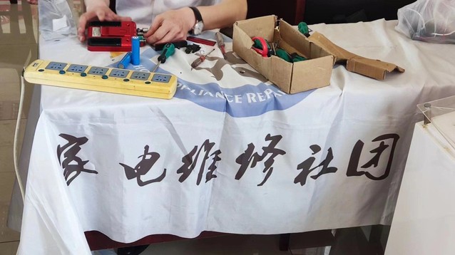由于光辉村进行了宣传,师生一行人进入村会议室就看到了村民提前拿来的故障家电数十件,有电风扇、电饭锅、电水壶、豆浆机、电磁炉、微波炉等,师生们准备好工具立即投入维修活动中。前期与光辉村的沟通中大致了解了有哪些故障家电,家电维修社团提前准备了充足的配件,保证了维修活动得以顺利进行,在师生们的共同努力下,本次维修活动共修理故障家电五十余件。