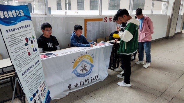 2022年11月4日下午,机电工程学院家电维修社团在指导教师的指导和社长的带领下,在校内进行了家电义务维修活动。