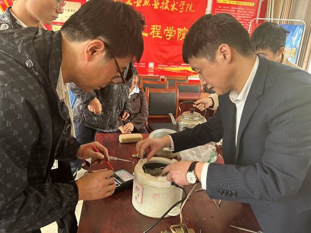 为切实发挥党建引领作用,树立党建品牌。5月16日上午,在机电工程学院党支部带领下,党员教师骨干会同家电维修社团、亮亮社团、焊接社团的志愿者赴定点帮扶单位--老洲乡光辉村开展义务家电维修活动。