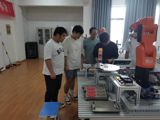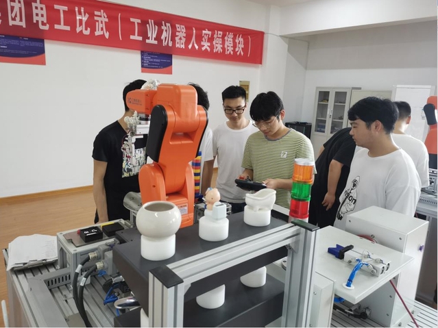 为检验beat36521级学生的工业机器人应用能力,让学生了解工业机器人基本原理和应用技能为目标,熟练掌握工业机器人的基本操作和编程,完成工业机器人典型装配应用的示教编程;展示学生在开发规范、综合运用多方面知识、问题分析与处理等方面的职业素养。6月6日晚上19:00,机电工程学院机电一体化技术专业《工业机器人应用》技能竞赛在工业技能中心北楼306实训室成功举办。