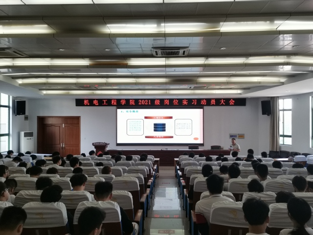 为贯彻落实学院教学任务,切实推进2021级学生岗位实习工作有序开展,加强学生对岗位实习的认识和了解,6月9日下午16:40,机电学院在阶梯201教室召开了2023年电气类专业岗位实习动员大会,机电学院分管教学和学生工作负责人及2021级机电一体化技术、电气自动化技术和物联网应用技术3个专业的224名学生出席了本次动员大会。