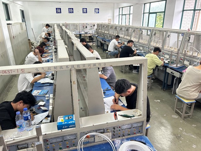 2023年6月17日我校机电工程学院在电气控制实训室开展了面向22级机电一体化、电气自动化、物联网应用技术及工业机器人专业的《电工电子技能》竞赛。本次竞赛指导老师为洪忠和周刚,竞赛内容包括室内照明电路设计、绘图,电工仪表的使用,常用照明电器检测,照明电路的安装等综合实践能力。