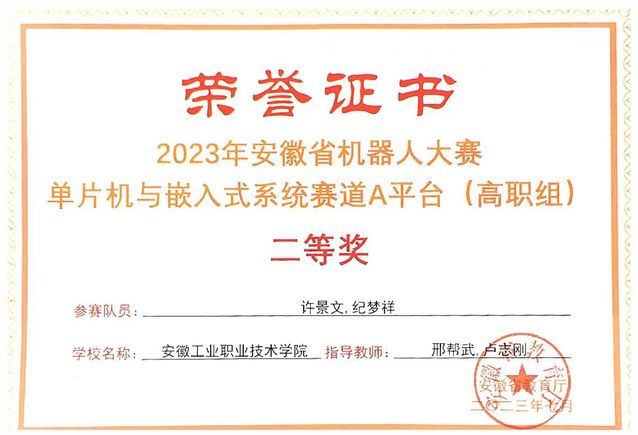 为激励大学生团队合作精神,提高学生运用微控制器技术解决实际问题的综合能力,培养更多的物联网技术优秀人才。学院组织学生参加由安徽省教育厅主办,铜陵学院承办的2023年安徽省机器人大赛——单片机与嵌入式系统竞赛。在指导老师们带领下,beat365代表队荣获二等奖1项,三等奖2项。