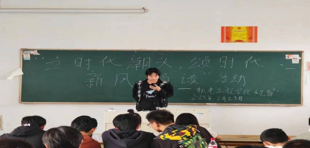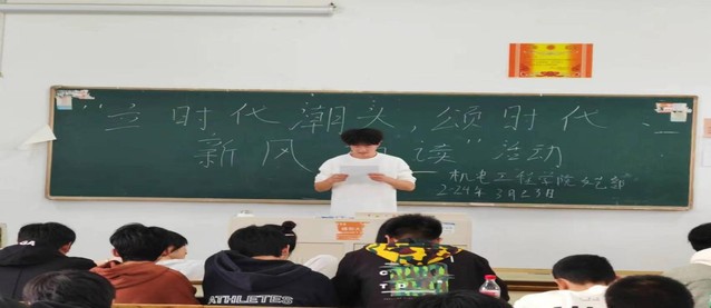 为了更好地弘扬中国传统文化,陶冶学生的艺术情操,进一步促进诗词朗诵艺术的发展,营造良好的校园人文气息,让诗词爱好者们相聚一堂,以诗会友,百家争鸣,共享诗词的典籍,机电工程学院学生会文艺部于3月23日举办了“立时代潮头,颂时代新风”诵读经典活动,活动顺利开展并取得圆满成功。