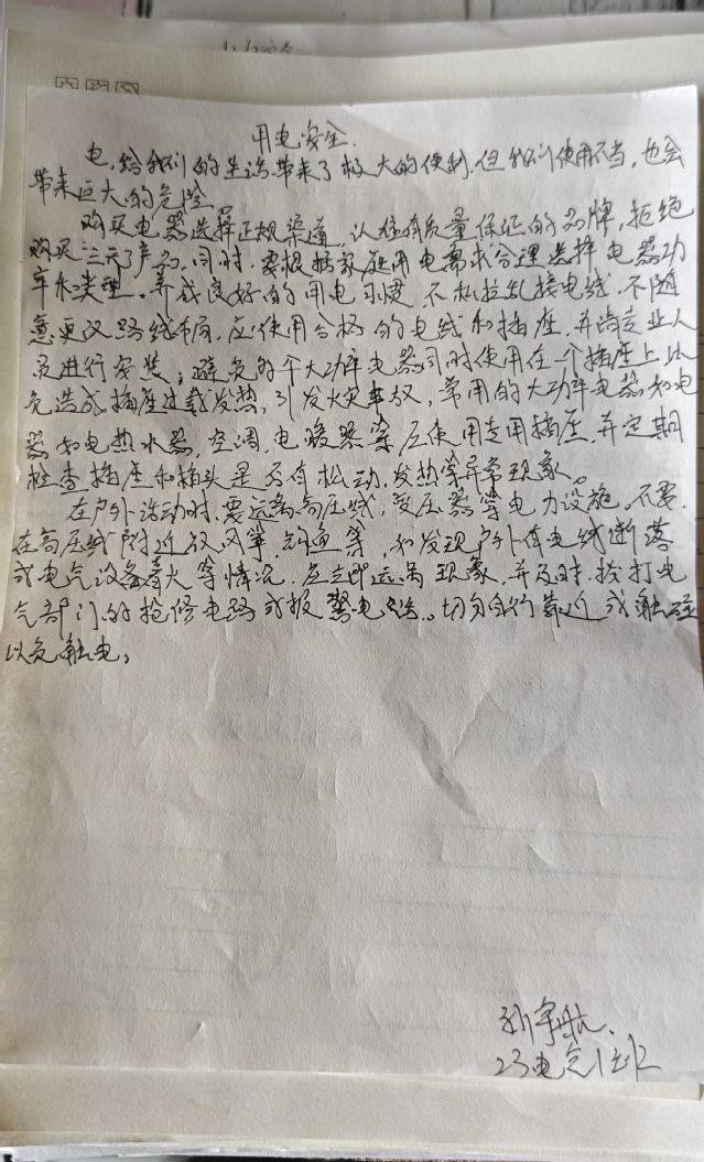 为了锻炼同学们的写作能力,提高同学对电力安全的意识、丰富校园的文化生活,提高学生的专业课素质,拓宽专业课内容,电子创客社团于2024年9月7日13:00在教学楼402教室举办了电力安全征文活动。