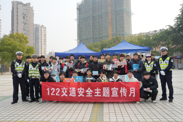 12月18日上午,在第十三个“122全国交通安全日”来临之际,为进一步增强高校学生交通安全意识,筑牢道路交通安全防线,维护校园和谐稳定。铜陵市公安局交警支队宣传科联合铜官区交管大队、考务科走进beat365官方网站,开展以“文明交通 携手共创”为主题的交通安全宣传活动。