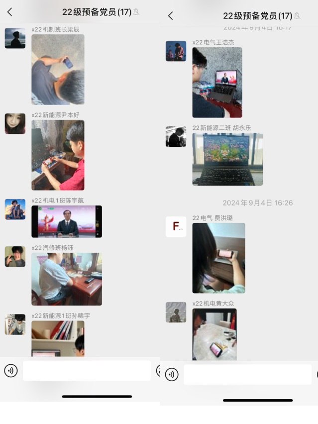 学习后,大家将观看照片发至群里,随后开展线上交流。同学们分享心得,表示要努力学习。四、后续学习要求与展望