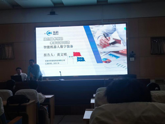 在分享米科智能在零部件研发方面的工艺与质控经验时,黄总经理鼓励学生们要积极培养专注、精益求精的工匠精神,这是在制造业立足的根本。他阐述了机器人产业化不仅需要先进的技术,还需与市场、管理紧密结合,由此建议学生们要努力锻炼自己的全局思维,拓宽视野,才能在未来的职场竞争中脱颖而出。以数字化工厂的实例为切入口,黄文明总经理生动形象地讲解了信息数字化如何对传统制造业进行重塑,从生产流程的优化到资源配置的高效利用,他呼吁学生们要积极学习信息技术,培养数字化思维,紧跟时代发展的步伐。