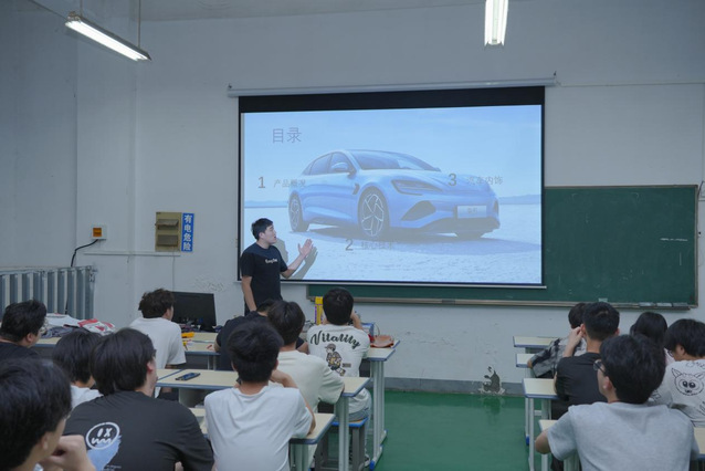 2025年6月12日晚18:40,汽车保养与驾驶社团在新能源实训室成功举办了一场精彩纷呈的汽车营销演讲比赛。本次比赛吸引了来自24级汽修和24级新能源汽车专业的八名同学同台竞技,其余同学作为观众热情参与,现场气氛热烈,展现了汽车专业学子的风采与活力。