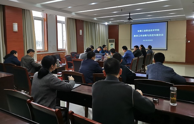 为贯彻落实《安徽省教育厅关于印发<安徽省高等职业院校内部质量保证体系诊断与改进工作实施方案>的通知》(皖教高〔2016〕11号)、《安徽省教育厅关于开展高职院校教学工作诊断与改进复核工作的通知皖》(教秘高〔2020〕42号)、《关于印发<beat365官方网站内部质量保证体系诊断与改进工作实施方案与工作规划(2020-2023)>》(安工职院〔2020〕79号)文件精神,进一步将诊改工作推向深入,学院于4月28日上午在第一行政楼一楼会议室召开2021年4月份教学工作诊断与改进专题会议。学院院长陈世虎出席并主持会议,党委书记、副院长李庆峰、党委副书记范清义、副院长秦华生、质量监控处、办公室、组织人事处、教务处、招生就业处、实训与数据资源管理中心、五系一部等部门主要负责人参加了会议。