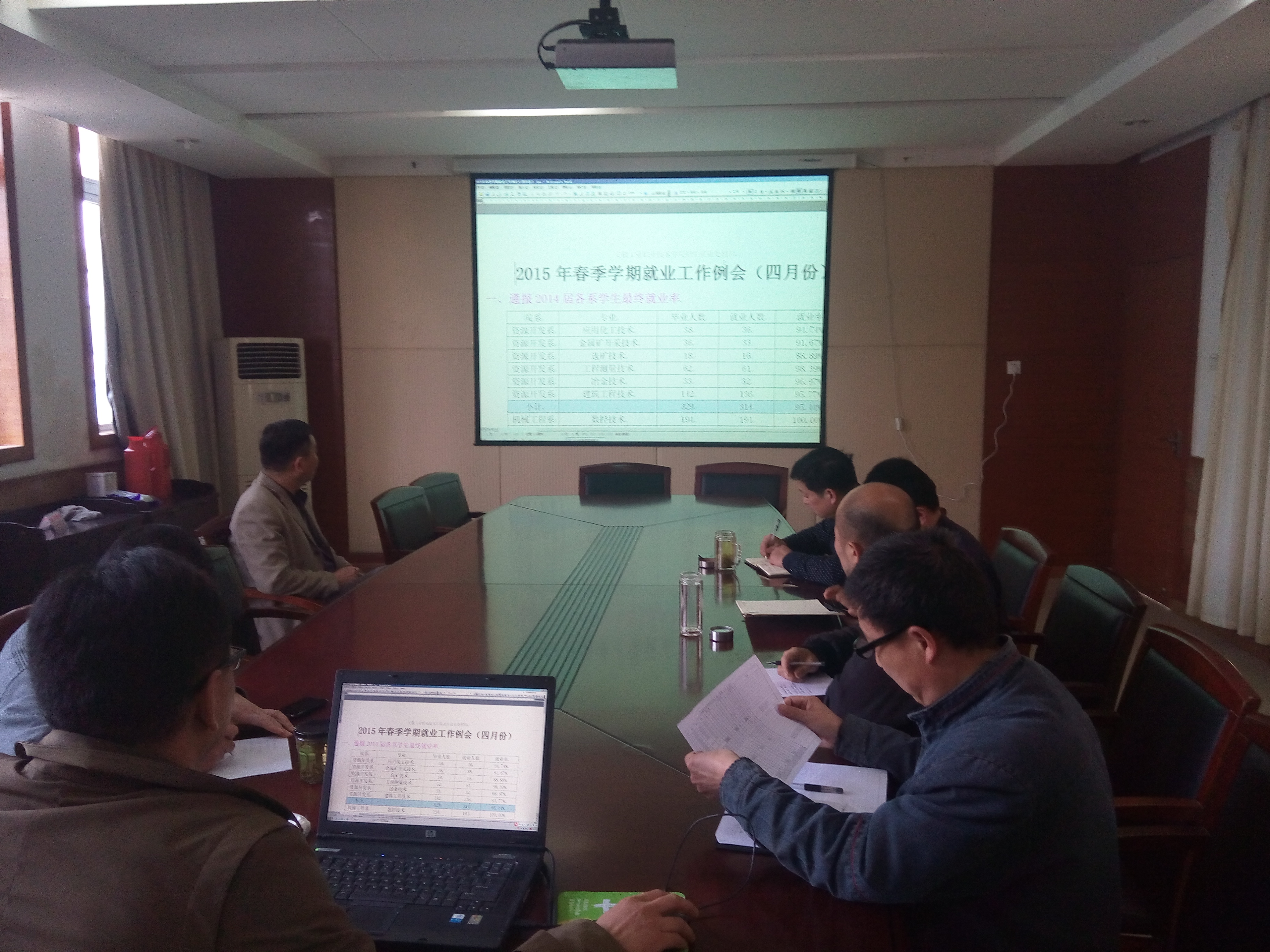 4月21日下午,安工职院在第一行政楼一楼会议室召开2015年度就业工作一次会议。会上,招生就业处鲍庭瑞主任作了2015年度学院就业工作计划报告,并传达了省就业工作培训会的相关内容。分管副院长马平在听取了报告后对今年的就业工作提出了指导性的意见和建议。