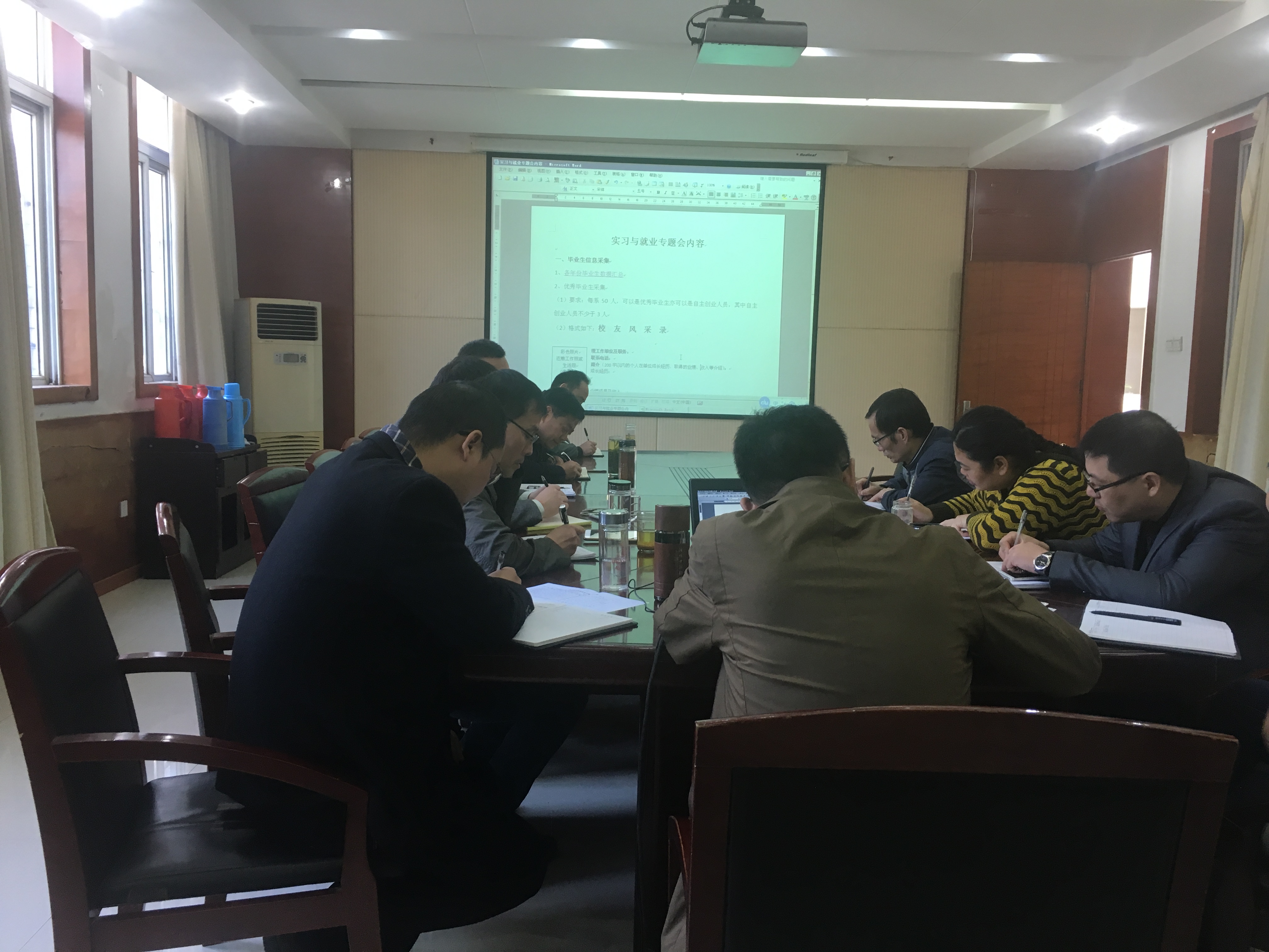 4月12日,学院2017年实习就业专题会议在学院第一行政楼4楼会议室召开,学院分管副院长李庆峰、教务处、招就处负责人参加此次会议。会议讨论了2017年实习、招聘、就业工作的方案和实施细则,对下一步的工作任务进行规划、落实。