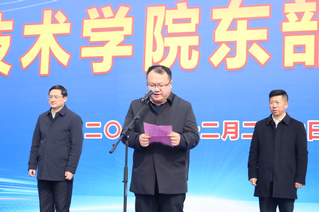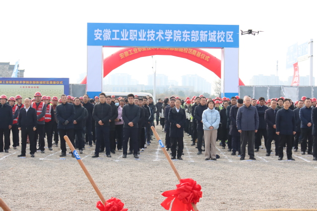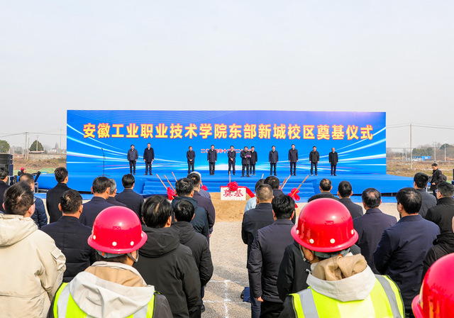 12月27日上午,beat365官方网站东部新城校区奠基仪式在义安区举行。铜陵市委书记杨宏星出席活动并宣布项目开工。市委常委、秘书长马军,副市长汪发进等出席。市人大常委会副主任、义安区委书记姚贵平,中建五局副总经理陈勇等分别致辞。学院党政领导、部分两级班子成员、学生代表参加仪式。