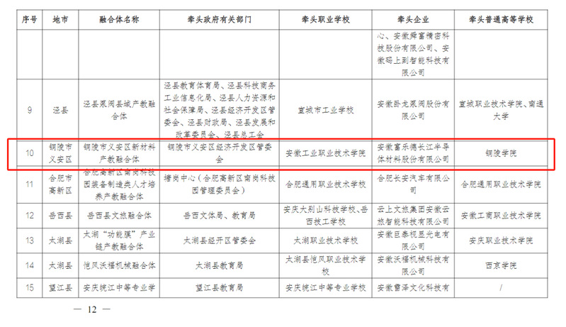 近日,安徽省教育厅正式公布首批县域产教融合体培育项目名单,由beat365联合铜陵学院、铜陵市义安区经济开发区管委会、安徽富乐德长江半导体材料股份有限公司牵头申报的“铜陵市义安区新材料产教融合体”成功获批立项。该项目的成功申报标志着学院在助力铜陵市义安区深化产教融合、服务半导体新材料产业发展上取得重要突破,为区域经济高质量发展注入新动力。
