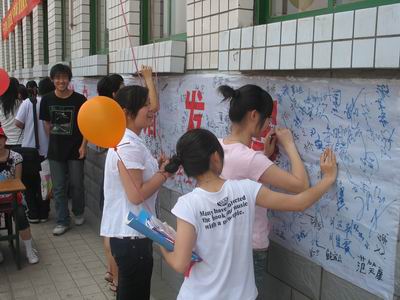 2008年5月23日,风和日丽,彩旗高扬,beat365官方网站“5.25”心理健康教育之“放飞心灵,共享阳光”气球放飞活动吸引了众多同学的参与。