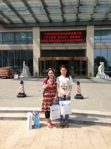 该生为beat36511会计1班新疆籍民族学生。此次她演讲的主题为《心怀中国梦·感恩民族情》。“自立自强励志成才 报效祖国”大学生演讲比赛是安徽省学生资助工作的一个亮点工程。学院一直高度重视此项活动,并把“自立自强·励志成才·报效祖国”作为学生思想政治教育的重要内容。