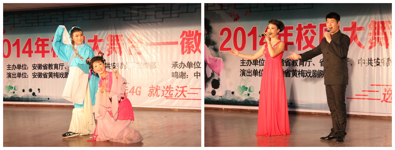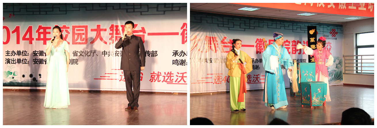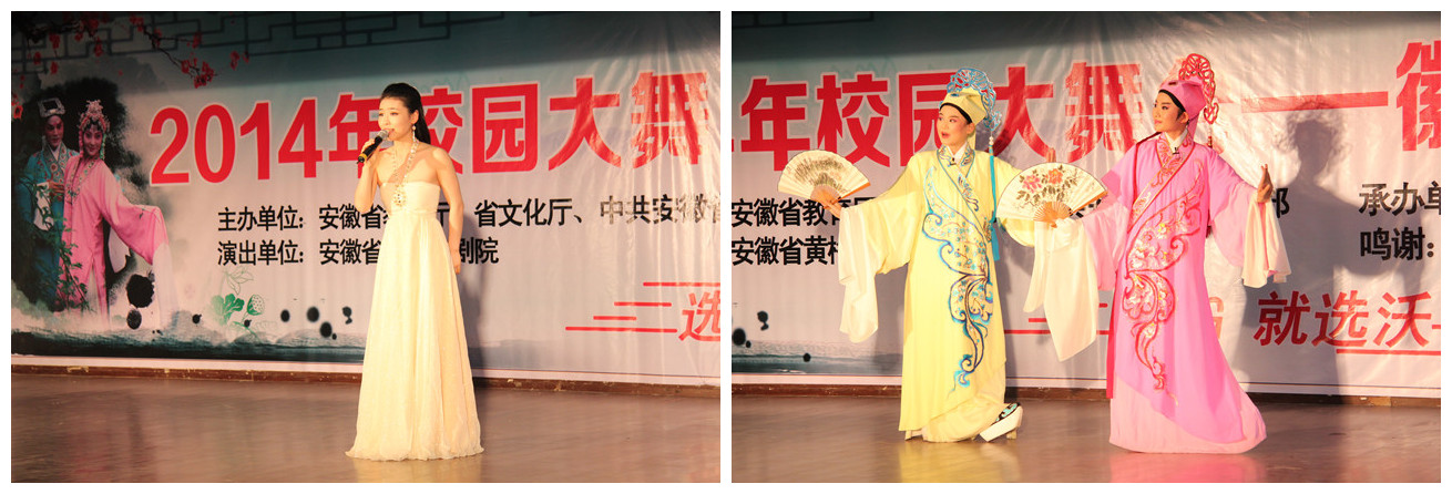 据悉,“校园大舞台——徽风皖韵进高校活动” 由中共安徽省委宣传部、省教育厅、省文化厅联合主办,主要以专业文艺院团为主,高校学生乐团(艺术团)为补充,内容有黄梅戏及安徽其他地方戏曲和舞蹈、民歌、音乐、话剧等节(剧)目,目的在于为高校师生奉献一批展现徽风皖韵、关照现实生活的艺术精品,充分展示我省文化繁荣发展的丰硕成果,满足校园文化建设和学生的精神文化生活需求。