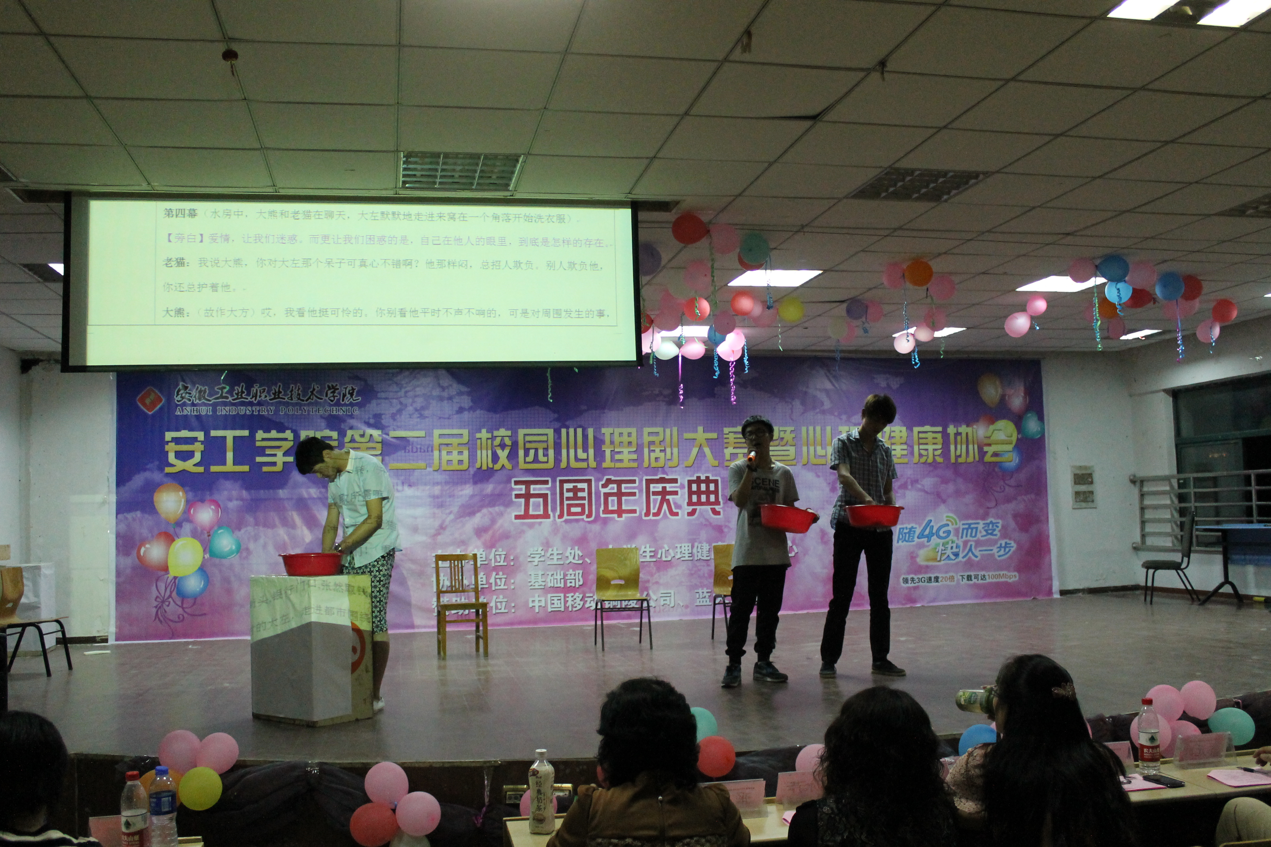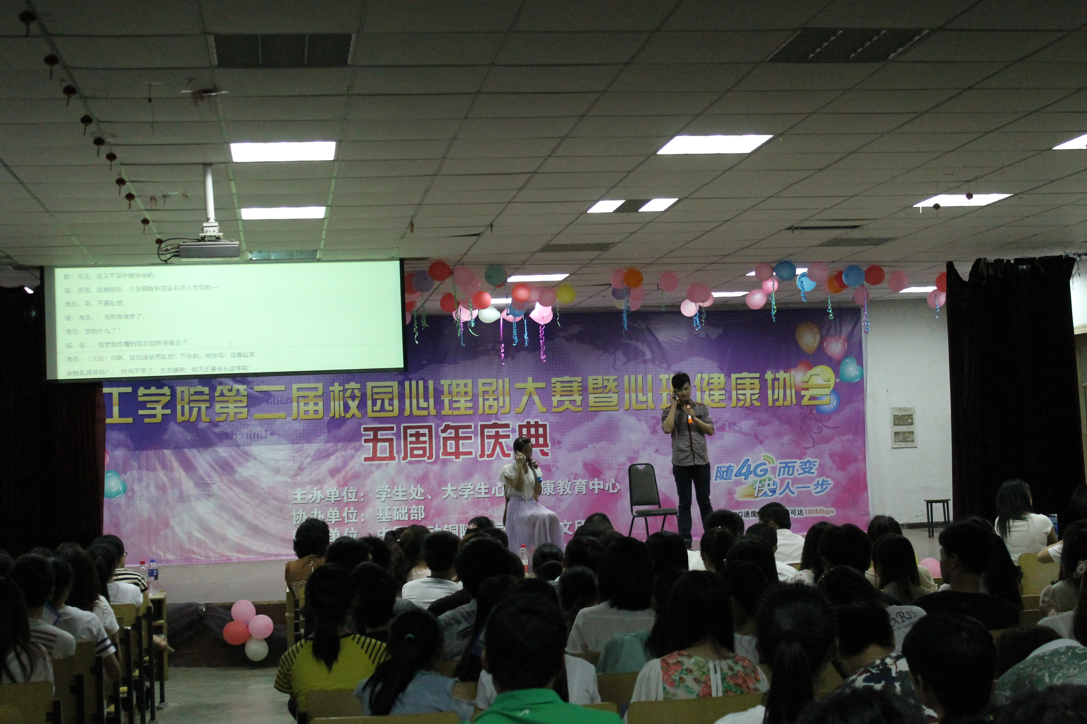 5月23日晚,第二届校园心理剧大赛暨心理协会五周年庆典在图六隆重举行。学院学生处主任、基础部思政教研室主任、院团委副书记及心理健康教育中心指导教师出席并担任评委,各系参赛队伍、学生观众共400余人参与了本次大赛。
