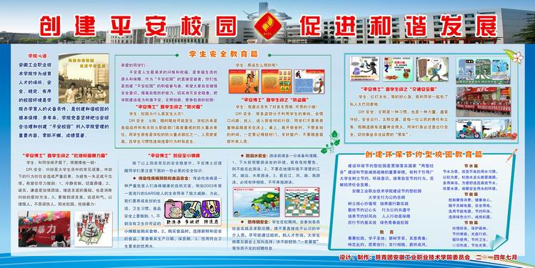 为进一步提高团员青年安全生产和环境保护的意识,激发团员青年参与安全生产管理和环境保护工作的热情,促进企业的平稳较快发展以及社会的生态文明建设,集团公司团委联合安全环保部举办了安全环保宣传板报网络竞赛活动。学院团委设计出版的“创建平安校园 促进和谐发展”板报荣获优秀奖。此次宣传板报参赛单位多、作品质量高。beat365接到比赛通知后,立即动员部署,收集相关资料,板报结合校园实际,将“校园安全知识”与“节约型校园”宣传结合起来,主题突出、内容充实,展示中取得了良好的宣传效果。