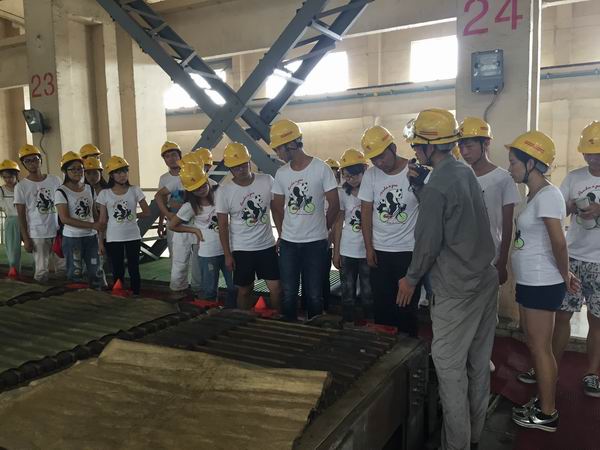 在金冠铜业分公司,实践队员们先是接受了该企业严格规范的安全培训,了解了该企业的企业文化及循环经济环保做法。随后参观了该企业熔炼车间,参观中,由09年毕业于beat365的一名青年员工为实践团队进行了铜冶炼流程讲解,学生们对高科技的“双闪”冶炼技术和机器人赞叹不已。参观结束,该企业十余名从beat365毕业的青年员工代表与实践团队进行了交流,就“职业规划、青年员工价值观”等话题展开了热烈的讨论,并互留了微信等联系方式