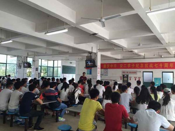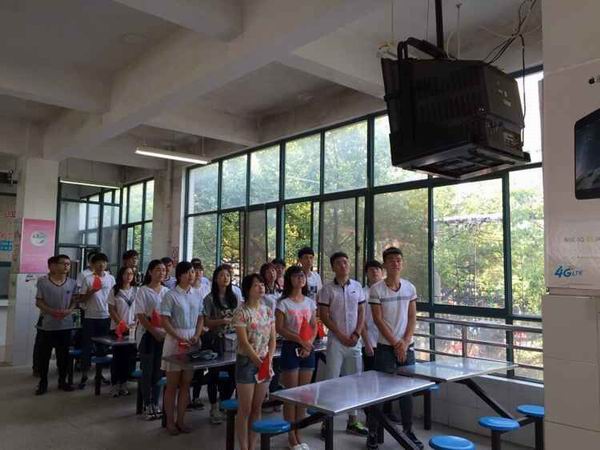 为庆祝中国人民抗日战争暨世界反法西斯战争胜利70周年,增强学生们的民族自信心与自豪感,作为新学期“开学第一课”的特色教育活动,学院积极组织在校大学生参加纪念抗战胜利大阅兵集体观礼活动。9月3日上午,100名大学生代表齐聚学院第三食堂,全程观看了阅兵式直播。