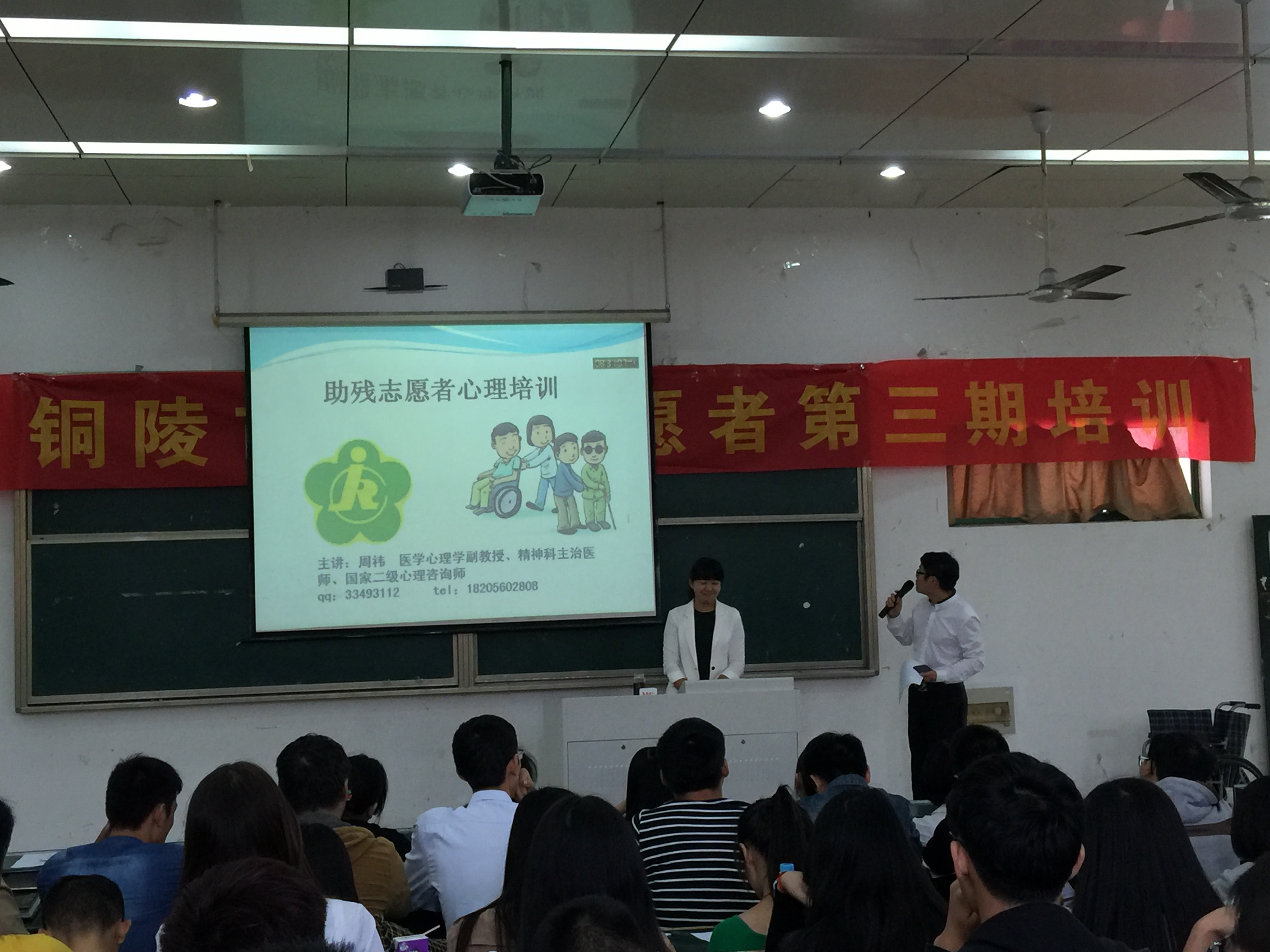 市残联邀请了周祎教授、柳老师、皮老师等几位老师为助残志愿者进行了细致生动的讲解,系统地向志愿者们传授了残疾人的分类及基本特点、各类残疾人的心理特征及需求、与残救人的沟通技巧、各类残疾人的康复训练及服务要点、残救人辅助器具应用等专业知识,主讲人还在培训过程中与在场助残志愿们进行了热烈的互动,以实践操作的形式加深了学生们对助残知识的理解。