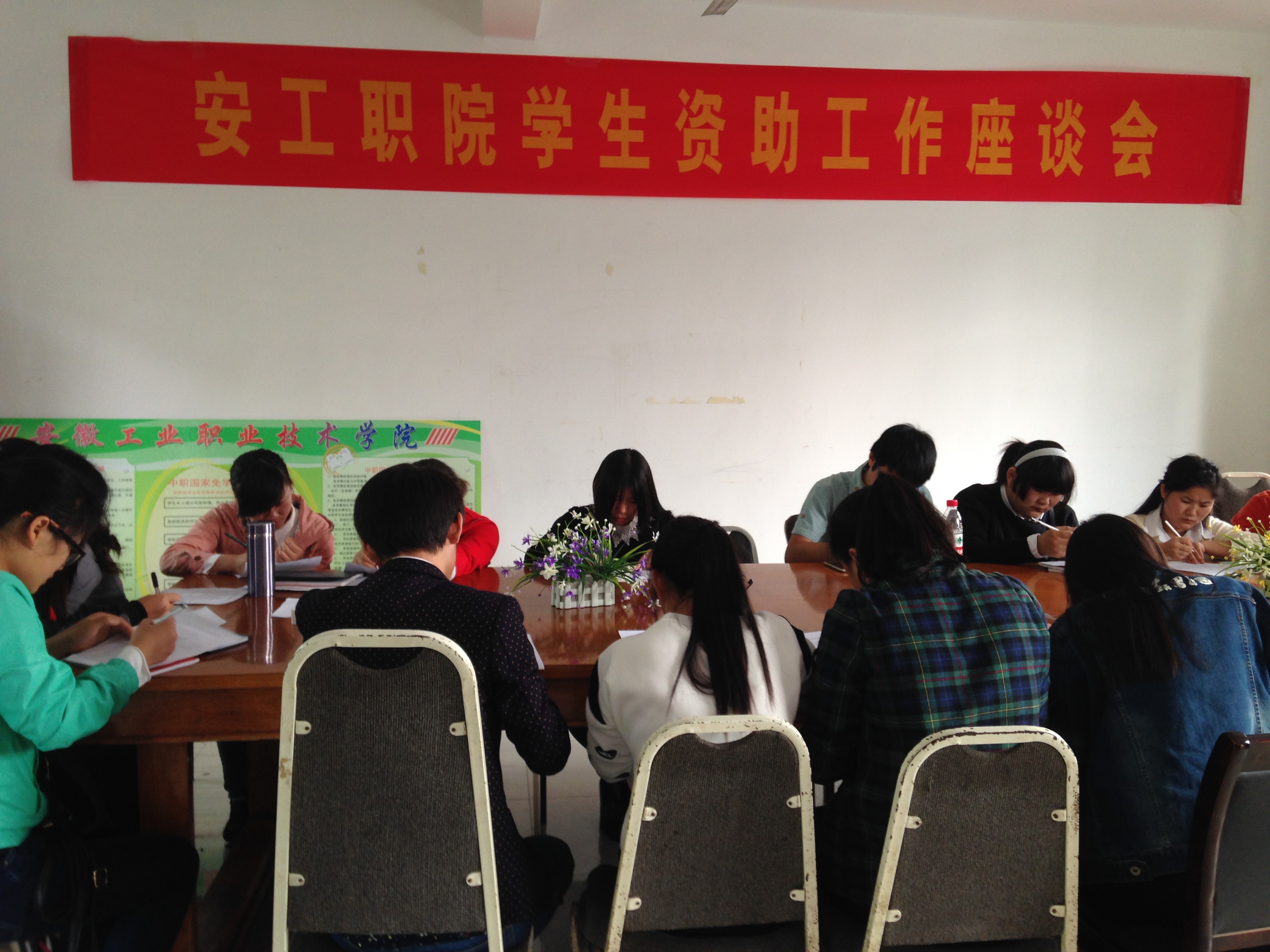为进一步了解学院各系困难学生认定及国家奖助学金评选情况,加强关注困难学生思想状态和学习情况,加强学生的励志、感恩教育,2015年11月6日学生处在第二行政楼四楼会议室召开了安工职院学生资助工作座谈会。学生处处长、负责资助的老师和23名受助学生代表参加了座谈。