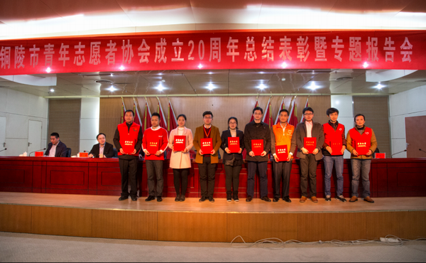 活动一开始发布了铜陵市青年志愿服务公益宣传片;团市委副书记方小雄给大家做了题为《铜陵青年志愿者:20年坚持做好每件“小事”》协会成立二十周年工作报告,报告指出市青年志愿者协会自1995年成立以来,大力弘扬“奉献、友爱、互助、进步”的志愿精神,团结动员广大志愿者围绕扶贫济困、助老助残、支教助学等方面,深入开展一系列主题鲜明、内容丰富、富有成效的志愿服务活动,在创建全国文明城市、推进精神文明建设中发挥了重要作用,成为服务我市经济社会又好又快发展的新兴力量。协会由成立之初的33名会员发展到现在的5万多人,由最初的几支队伍发展到现在32支直属志愿服务分队,涌现出了千人千愿、快乐午留生等一批志愿服务品牌项目和中国好人俞茂亚、安徽省道德模范古宏媛等一大批优秀青年志愿者;随后大会对2015年市青年志愿者年度人物、铜陵市优秀青年志愿者、铜陵市青年志愿服务优秀组织以及铜陵市青年志愿服务优秀项目进行了表彰。学院青年志愿服务工作在本次表彰中获得了一个优秀青年志愿者和两个青年志愿服务优秀项目荣誉。
