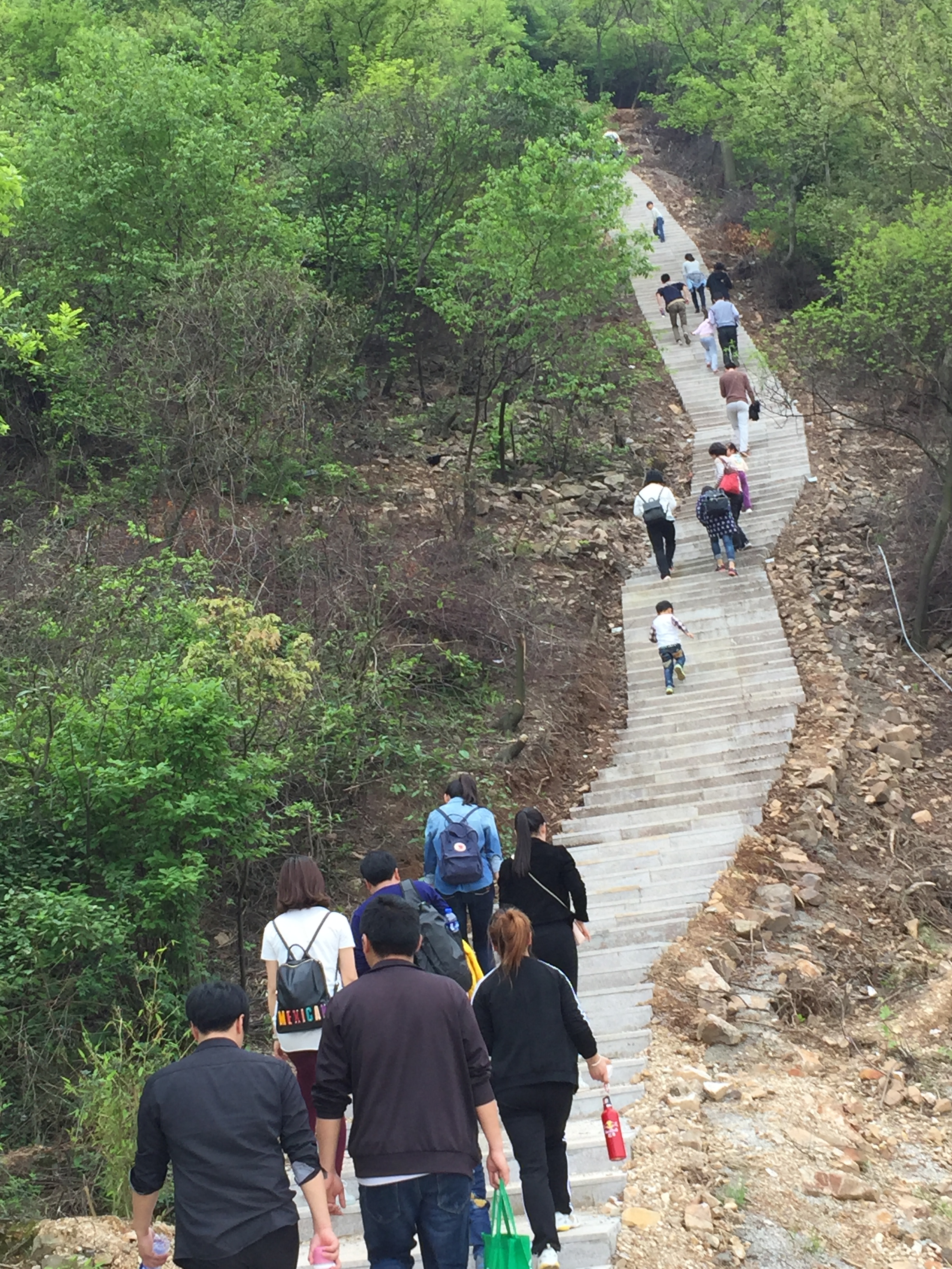 伴随着春日的暖阳,和着轻快的脚步,一路欢歌笑语,大家抵达铜官山脚下集合。在领队简单介绍了活动内容及登山注意事项后,大家便迫不及待地投入到大自然的优美怀抱中。望着错落有序的铜官山峰,呼吸着“天然氧吧”给予的清新空气,大家精神抖擞,向着顶峰出发。山路中老师们言语鼓励,互相帮助,互相开着小玩笑,经过一个多小时的攀爬,终于来到了大铜官山的顶峰。大家虽然很累,但是开心和喜悦都洋溢在笑脸上。