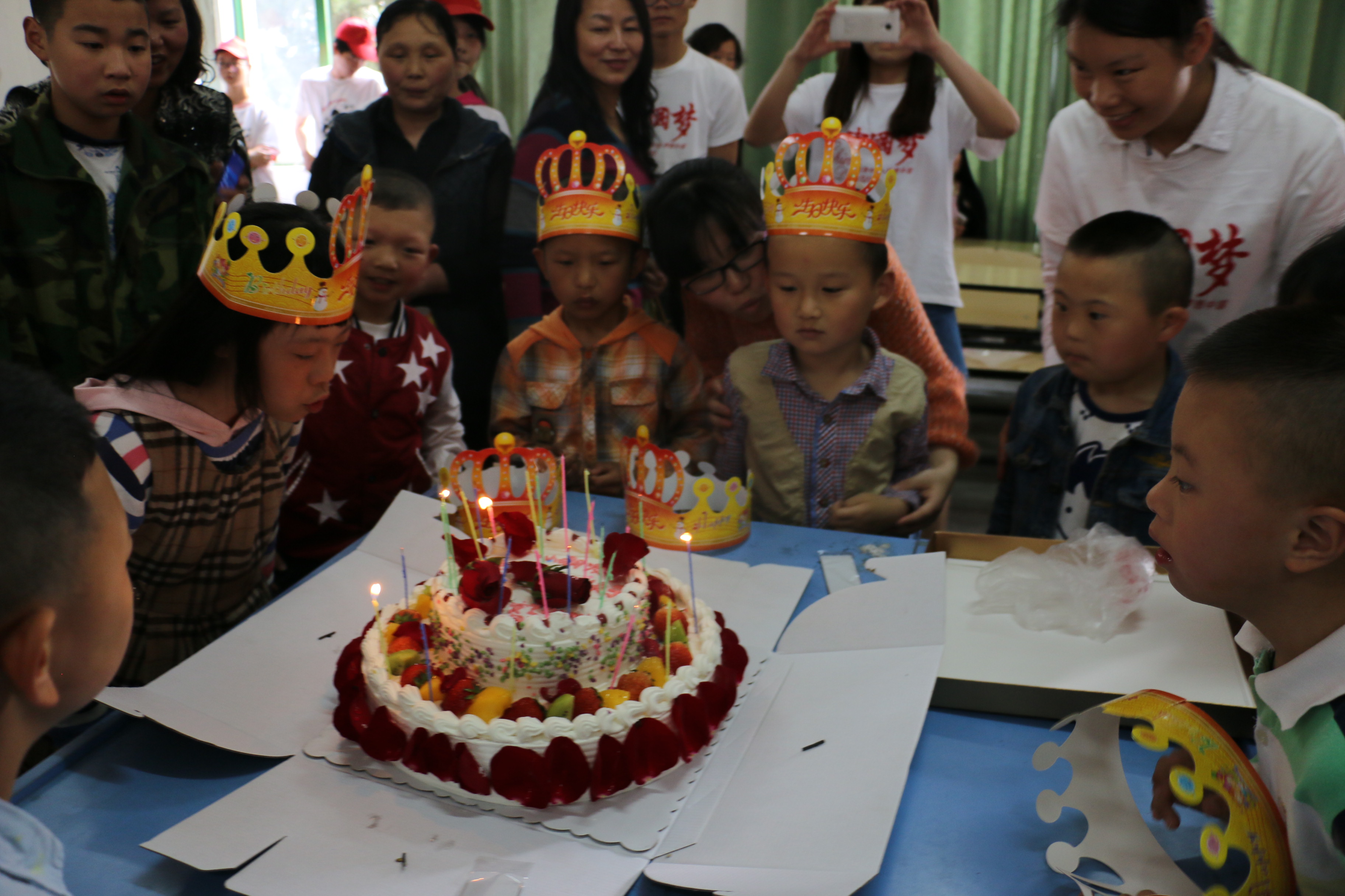 活动最后,院学生会体育部和实践部为本次生日会送上了生日蛋糕,孩子们围在蛋糕周围许愿、吹蜡烛、分享蛋糕,从中感受集体生日带来的欢乐。