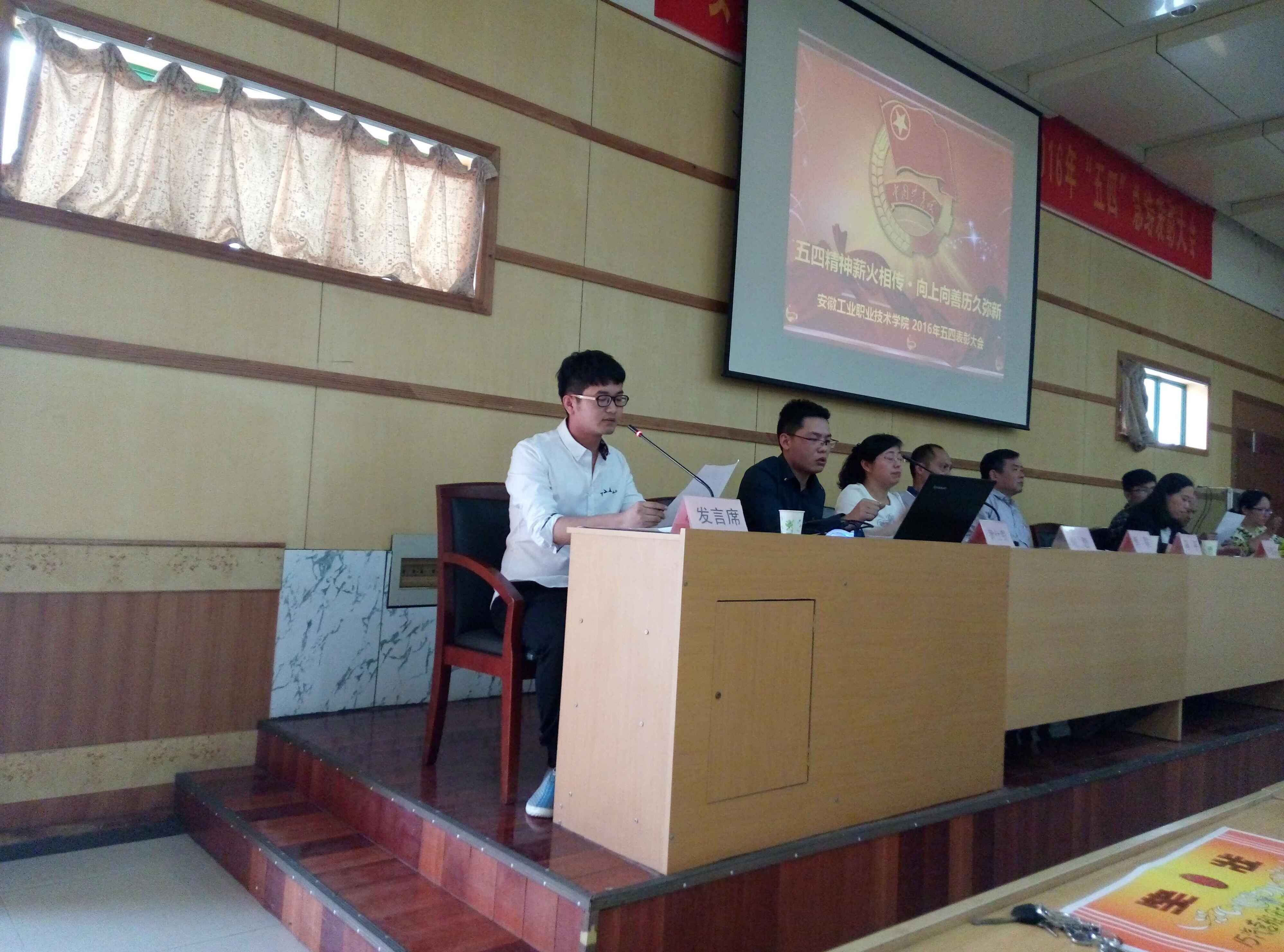 学院党委副书记马平代表学院在大会上作重要讲话,向受到表彰的集体和个人表示热烈的祝贺。马平副书记饱含深情地回顾了五四运动时期以及五四运动97年以来中国青年的奋斗史,就新时期如何继承“五四”传统,弘扬“五四”精神,促进团员青年成长发展和进一步做好团学工作所提出提出了三点殷切希望和要求。一是要求广大青年学习、了解中华民族的历史,高举时代旗帜,坚定理想信念;二是要求广大青年生心怀感恩。感恩父母、感恩学校、感恩社会,争做和谐家庭的好孩子;争做和谐校园的好学生;争做和谐社会的好公民;三是要求广大青年顺应时代的要求,勤奋学习强技能。做一个有技术、有技能的劳动者;做一名有文化、有素养、有担当、有正确是非价值观的当代好青年。
