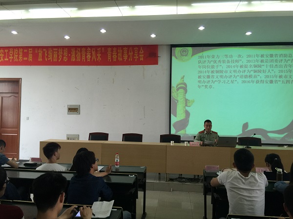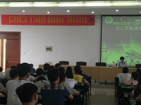 为深入贯彻落实党的群团工作会议和习总书记系列重要讲话精神,积极响应团中央对高校共青团思想引领工作提出的新要求,引导广大青年学生更好地树立和践行社会主义核心价值观,激励广大青年学生向身边的榜样学习,学院于5月19日下午举办2016年五四青年活动月系列活动之“梦想公开课”青春故事分享会。此次分享会邀请到两位铜陵市首届“青年五四奖章”获得者——铜陵市疾病预防控制中心检验师张义华医生与铜陵市消防支队车站中队综合班班长陈伶旺来校与大学生交流。