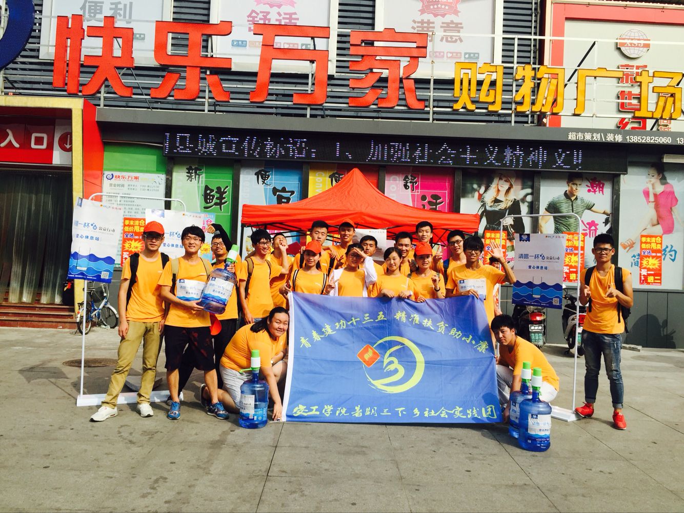 8月21日下午学院“三下乡”社会实践团来到枞阳街头,开展了“请喝一杯水”公益行动,志愿者们用自己的实际行动,为工作在一线的室外工作者送去一夏的清凉。下午14:20,实践团队员们带着纯净水来到活动现场,周围围满了市民,部分市民表示,这样的公益活动十分有意义,希望可以加入到我们中来。队员们表示自己出去都有点受不了,更不要说那些顶着烈日工作的环卫工人和交警,看到他们尽职尽责地坚守岗位,自己也很感动,想通过这样一种形式对户外工作者表示感谢!