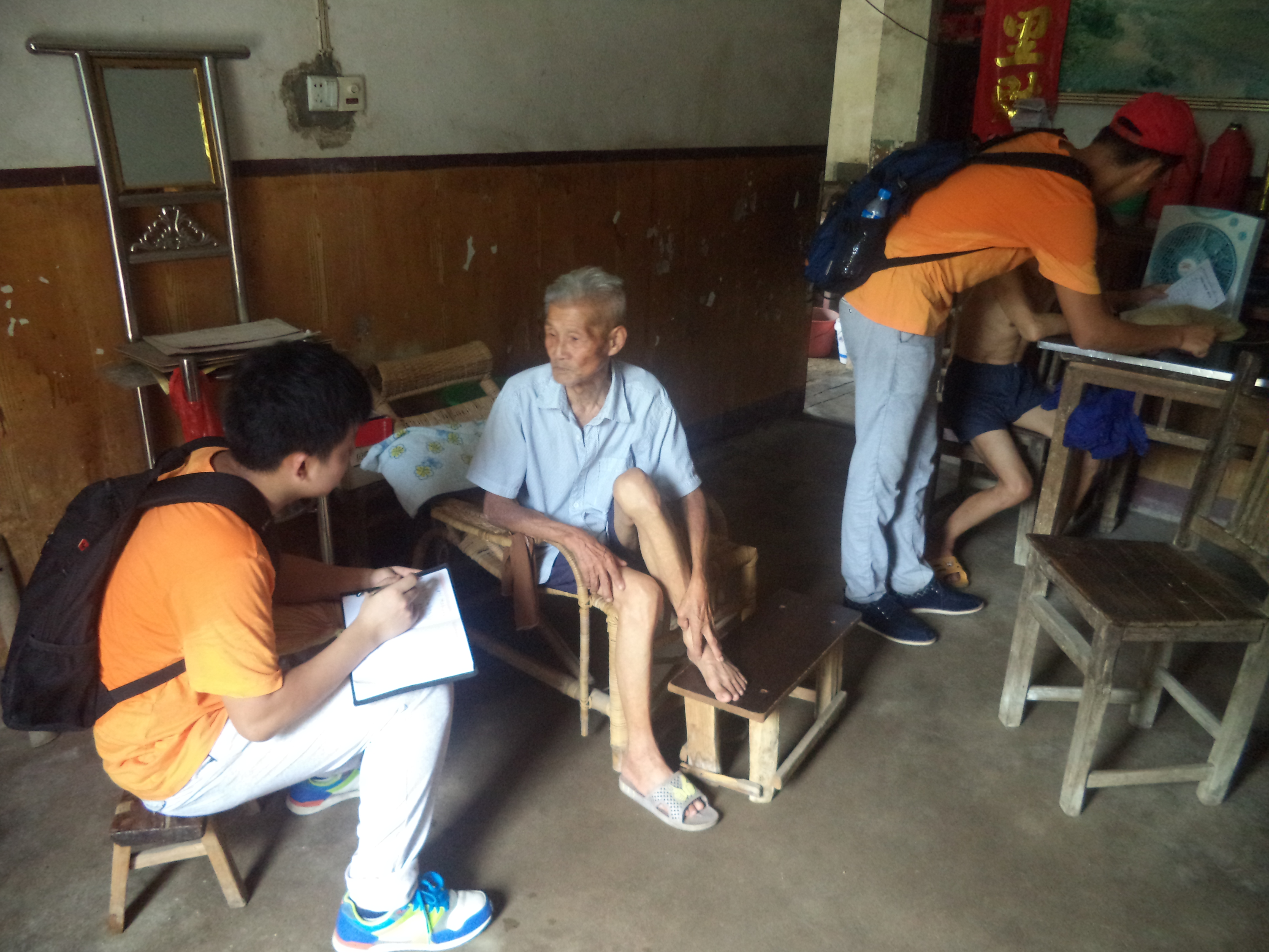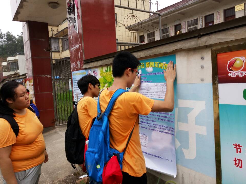 座谈会结束后,社会实践团走进村民家中,围绕社会主义核心价值观、医疗卫生常识、新农合、精准扶贫等相关政策进行了宣讲和志愿服务等工作,并了解村民的安全防护情况以及科普知识的掌握水平。“我们家没有地,这几年主要依靠村里的帮扶过日子,老伴半身不遂,需要长期住院,天天吃药。医疗费报销比例将近80%,现在党和政府的政策好,要不然我家老伴早就没了”一位身患耳疾的老人深情地向调研团介绍自己的生活情况。王主任表示:村里的贫困户和特困户都是通过村民代表公开选出来的,比较透明,工作大家都比较认可。但是村里大部分贫困户底子差,村里精准扶贫的压力虽然大,但是村里面会想办法帮助其尽早脱贫,打赢精准脱贫攻坚战。走访结束后,实践团成员们将自己设计的关于新农合、精准扶贫、安全防护等宣传海报张贴在村委宣传栏和橱窗里,供村民们观看、学习。