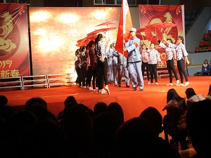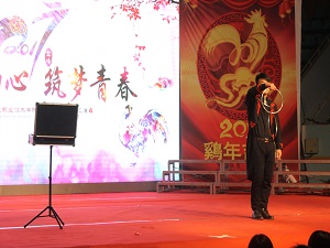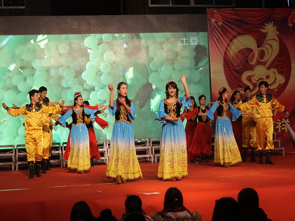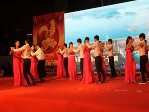 演出在喜庆热闹的开场舞《在欢庆的日子里》拉开序幕。在一片喜庆祥和、笑迎新元的氛围中,学院院长陈世虎发表了热情样衣的新年致辞,他充分肯定了2016年学院各项工作所取得的重大成就,也展望了2017年学院建设和发展的美好蓝图,并代表学院领导班子向全院师生致以新年的问候与祝福。