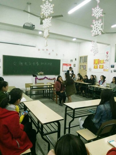 3月7日下午,院学生会秘书部在教学楼111教室举办了主题为“女性美丽课堂”的讲座。专业化妆师通过现场展示的方式,一边为女生化妆一边耐心讲解要点,介绍女生日常护肤与化妆的小知识。随后,学院礼仪队队长为在场女生们展示了基本的女性礼仪。讲座结束之后,大家表示此次讲座内容非常实用,让女生们懂得了如何提升自己的形象气质。