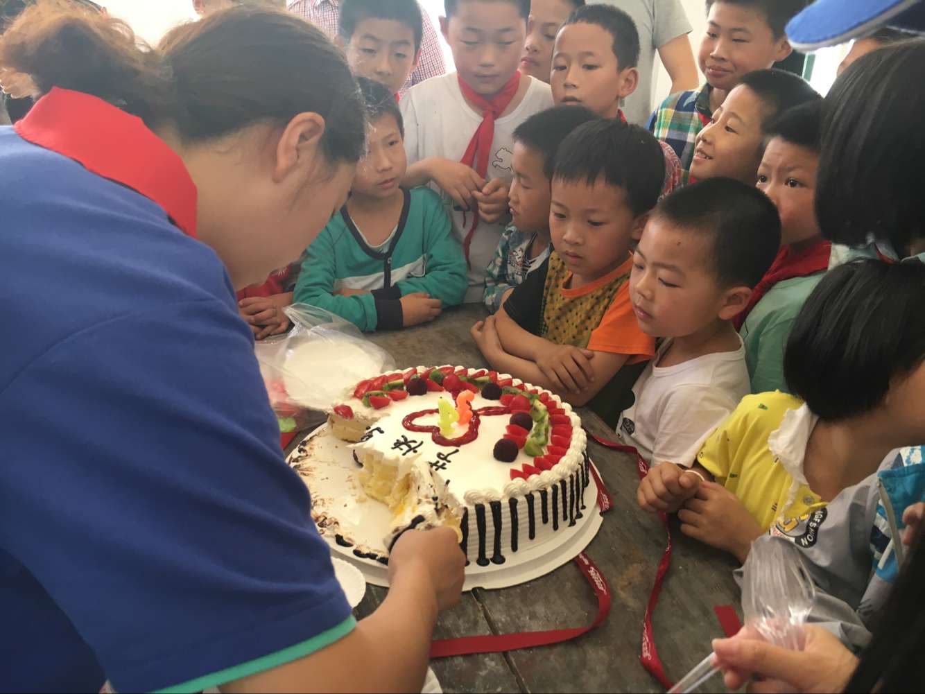 活动开始,孩子们为志愿者系上了红领巾,志愿者们向该校仅有的34名小学生献上了六一祝词,祝愿孩子们健康成长,为实现中国梦努力学习。随后,志愿者代表学院向34名小学生分别捐赠了价值100元的“爱心包裹”。在快乐的《生日歌》中,孩子们与志愿者度过了一个难忘的集体生日。活动现场非常热闹,志愿者带着孩子们通过开展拔河、抢板凳、绘画等活动,加深了交流,建立了深厚的友情。