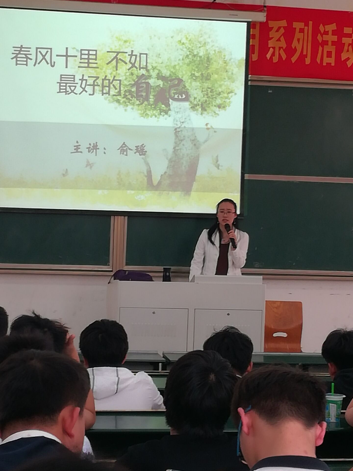 为进一步提升学院心理健康教育工作水平,构建和谐幸福的校园环境,根据学院“放飞心灵添彩青春”大学生心理健康教育月活动安排,学院大学生心理健康中心于5月26日下午举办了主题为“春风十里不如最好的自己”的心理健康讲座,150余名学生参与了此次活动。