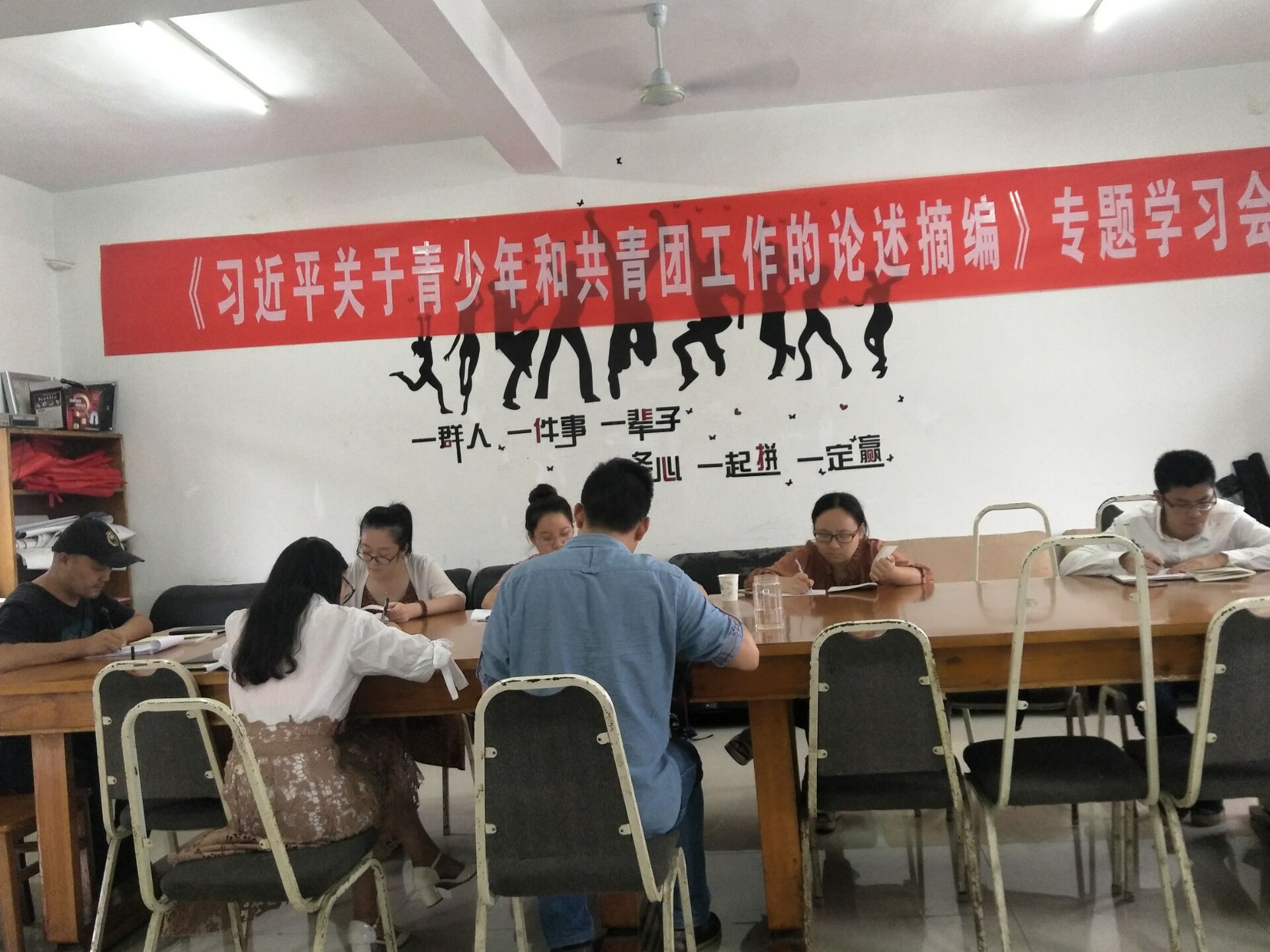 为深入学习习近平总书记关于共青团工作的重要论述和重大理论,指导推进学院共青团改革, 9月21日,学院团委在第二行政楼四楼会议室召开专题学习会,认真学习《习近平关于青少年和共青团工作的论述摘编》,学院团委负责人和各系团总支书记参加了会议。