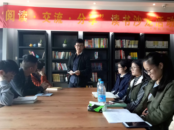 活动开始,围绕着“阅读·交流·分享”主题,同学们展开了激烈的讨论,大家都毫不吝惜地互相交流着自己的看法。他们依次走上前谈论自己的读书数目,介绍书中的内容,诵读书中的精彩片段,分享着他们从中读到的人生感悟并向大家推荐自己喜欢的书籍。在座的同学们也都静下心来细细聆听,时不时地提问,大家都沉浸在这浓厚的文学氛围中。活动将近尾声时,老师们联系自身的求学经历和工作体会,也向大家分享着自己读书的故事,鼓励同学们充分利用大学时光,多读有益书籍,广泛涉猎各学科知识。
